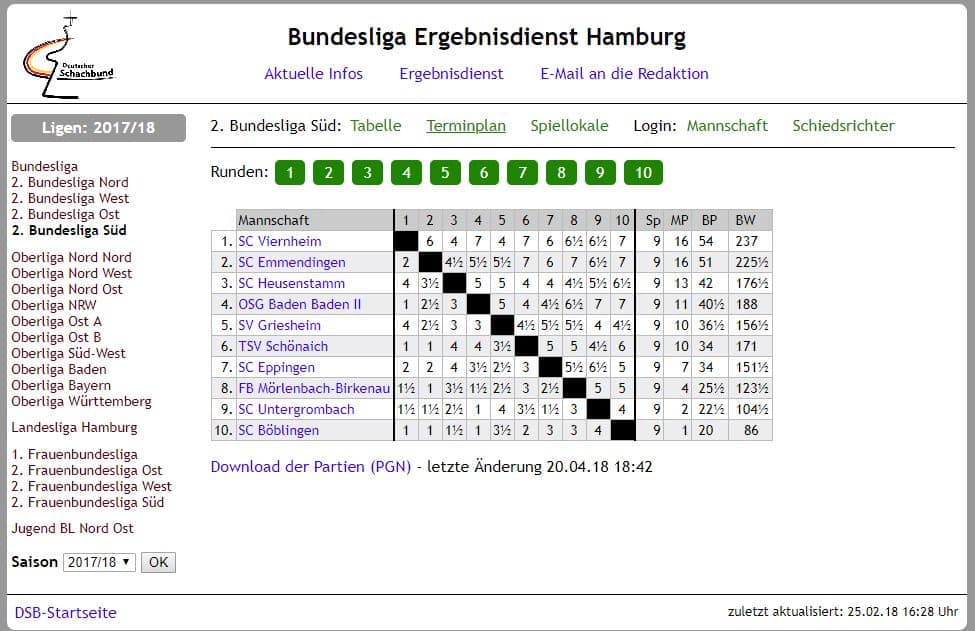 - Partien zum Nachspielen, Ergebnisse und Tabellen