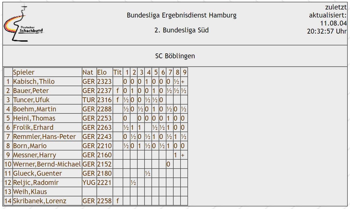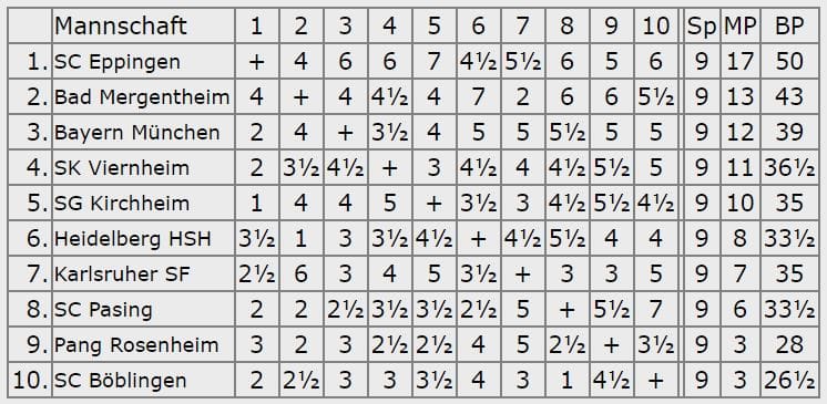 - Runde 7: Pang Rosenheim – SC Böblingen 3,5:4,5