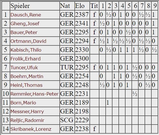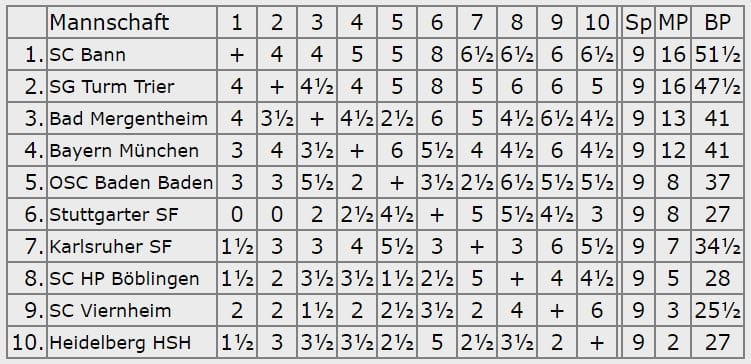- Runde 9: Bayern München – SC Böblingen 4,5:3,5