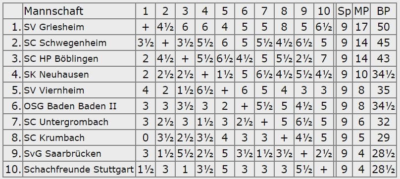 - Runde 8: SC Böblingen – SV Viernheim 6,5 : 1,5