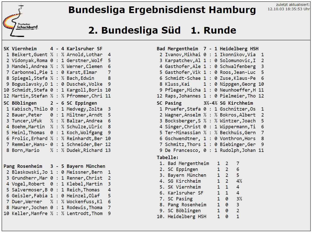 - Aufstellungen und Einzel-Ergebnisse aller Mannschaften