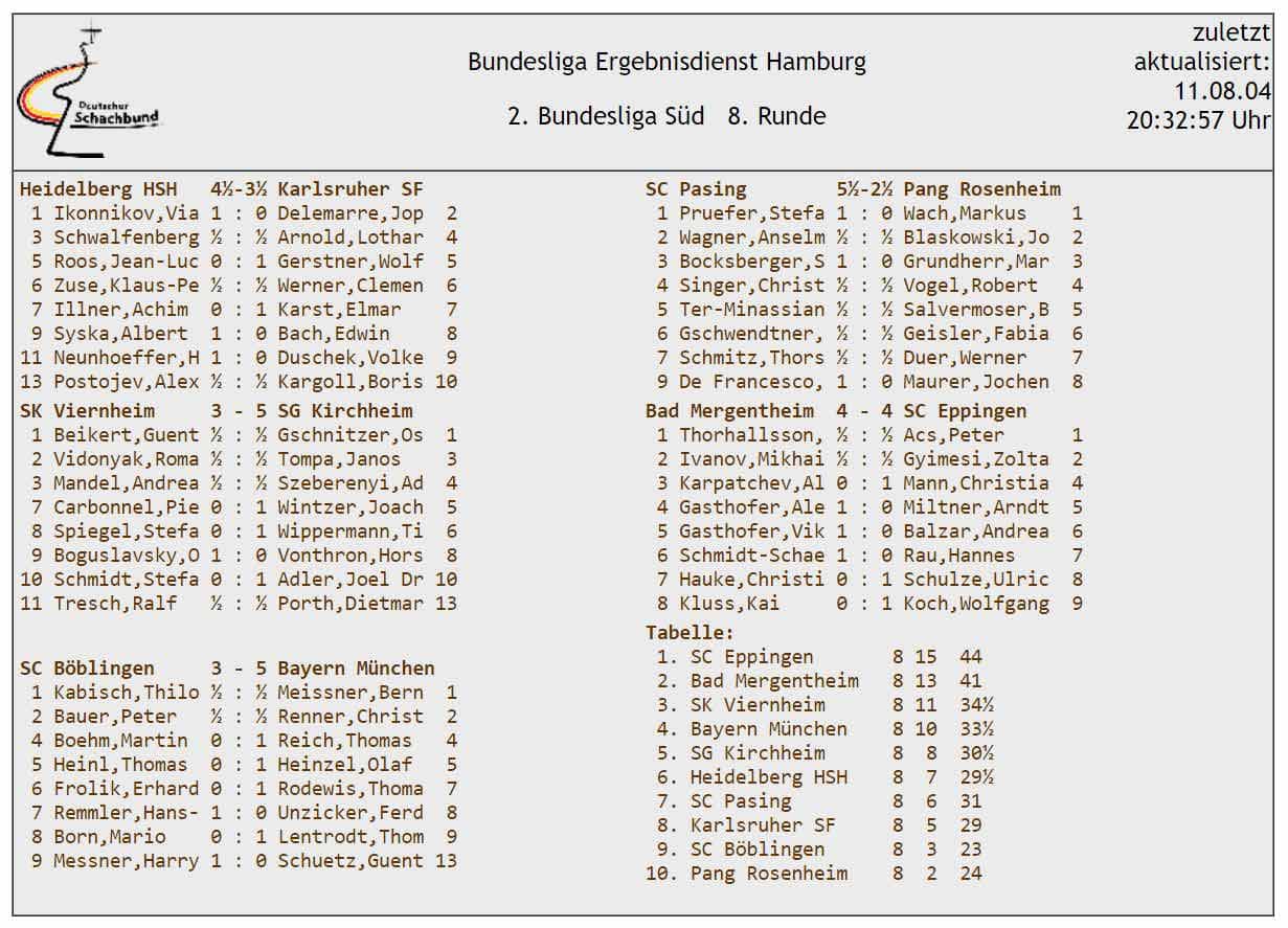 • Aufstellungen und Einzel-Ergebnisse aller Mannschaften