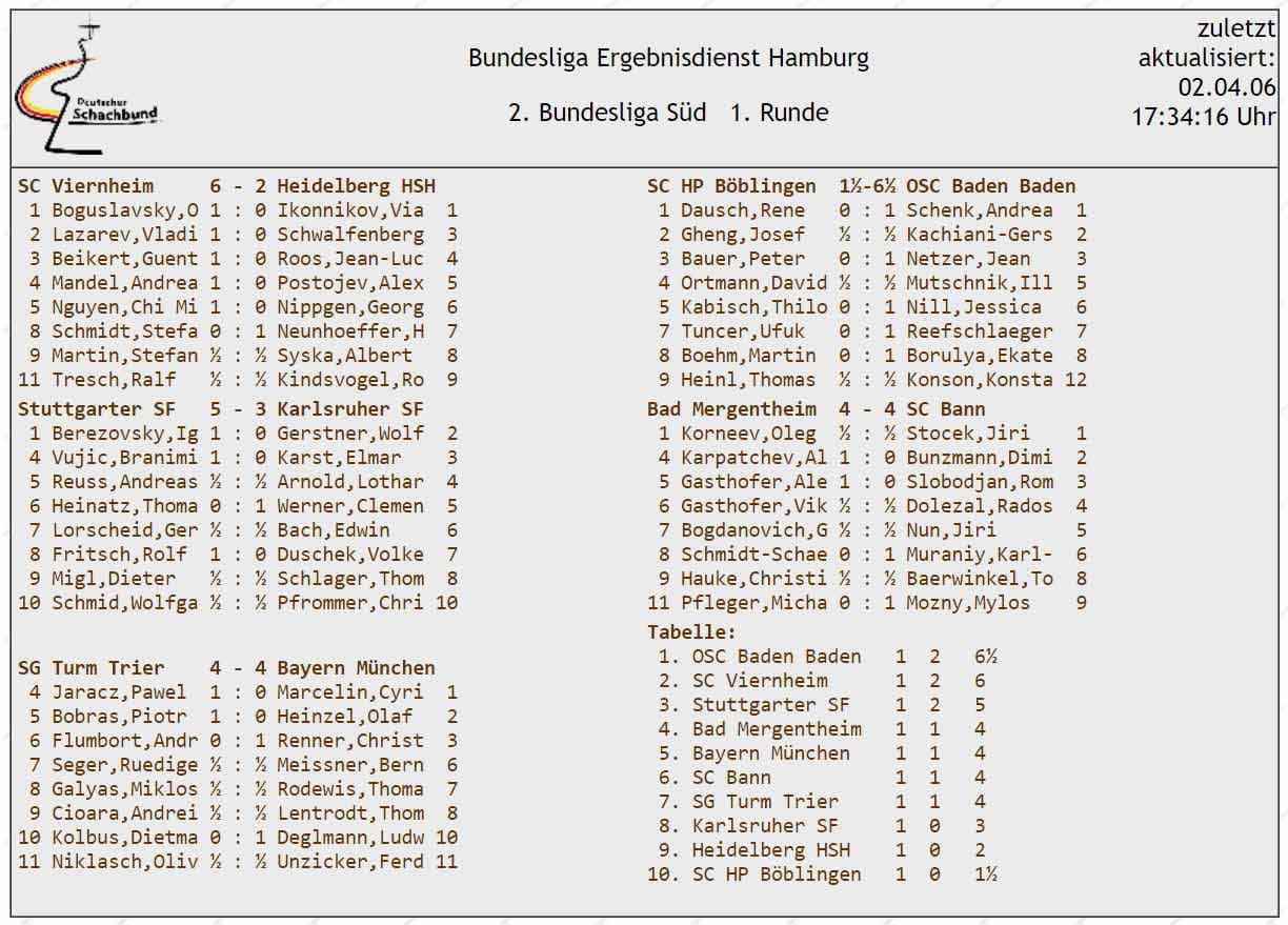 - Aufstellungen und Einzel-Ergebnisse aller Mannschaften