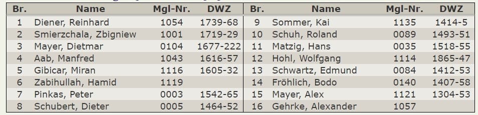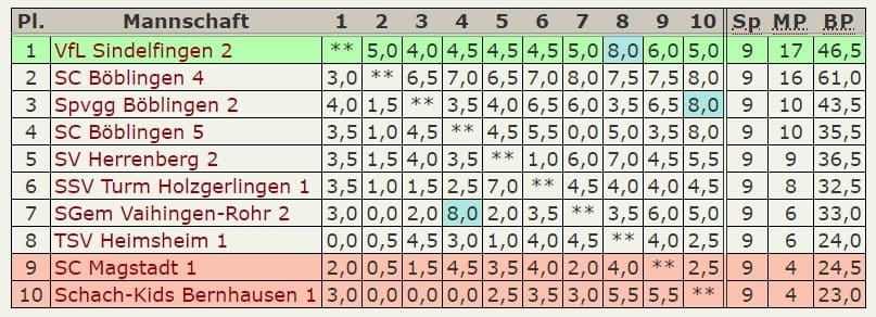 SC Böblingen 5 – Saison 2019-2020Endstand 4.Platz – Kreisklasse Abschluß-Tabelle 5.Mannschaft – Kreisklasse-2019-2020 Aufstellung-Tabelle 5.Mannschaft – Kreisklasse-2019-2020 Tabelle Aufstellungen Einzelergebnisse Topscorer Terminübersicht - - - - Archiv