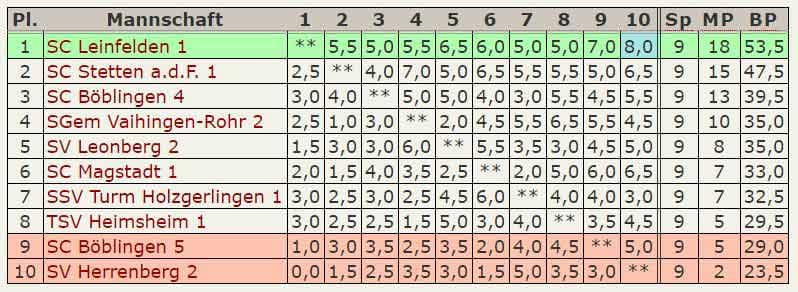 Endstand 9.Platz – Kreisklasse Stuttgart-West